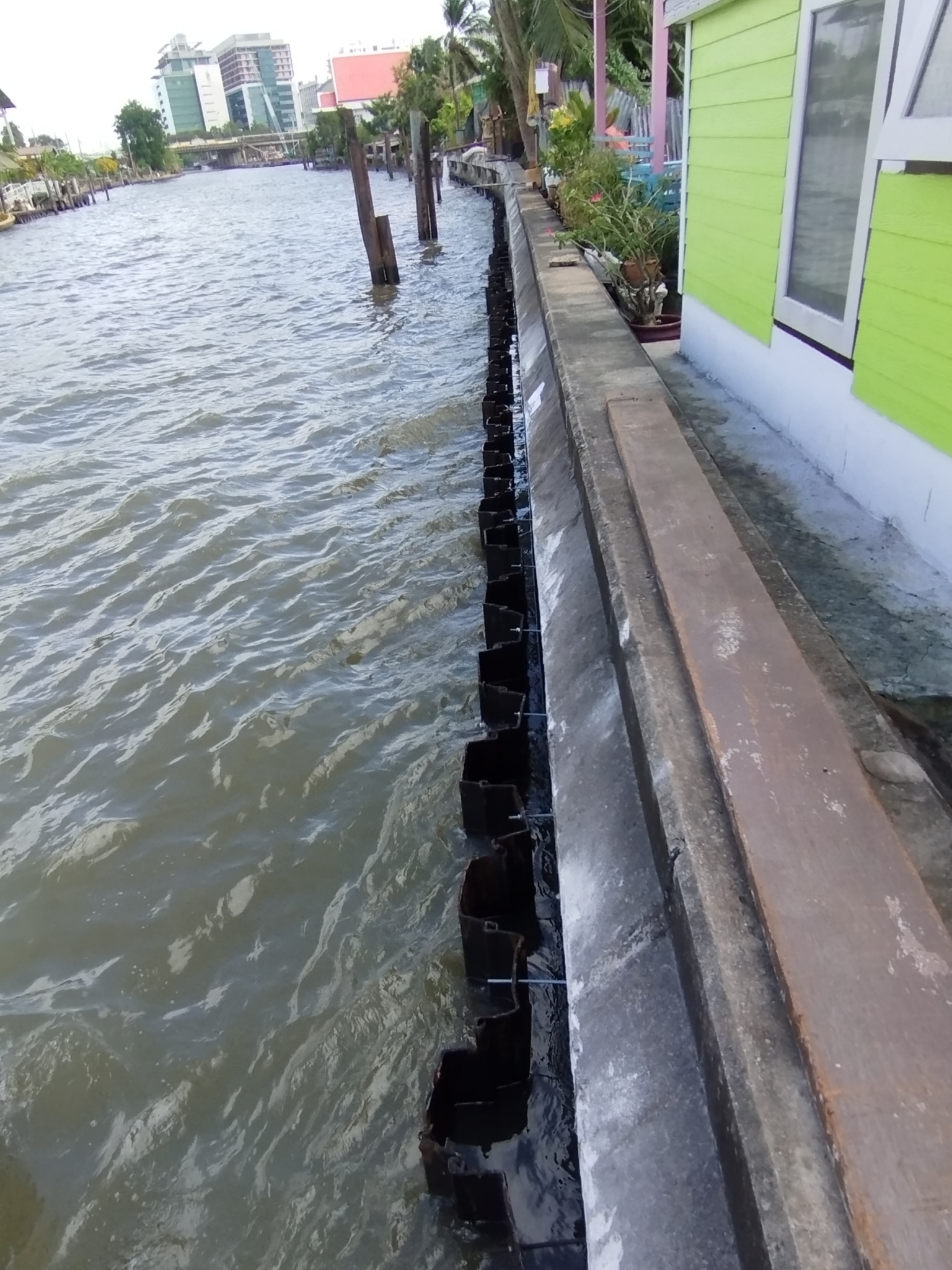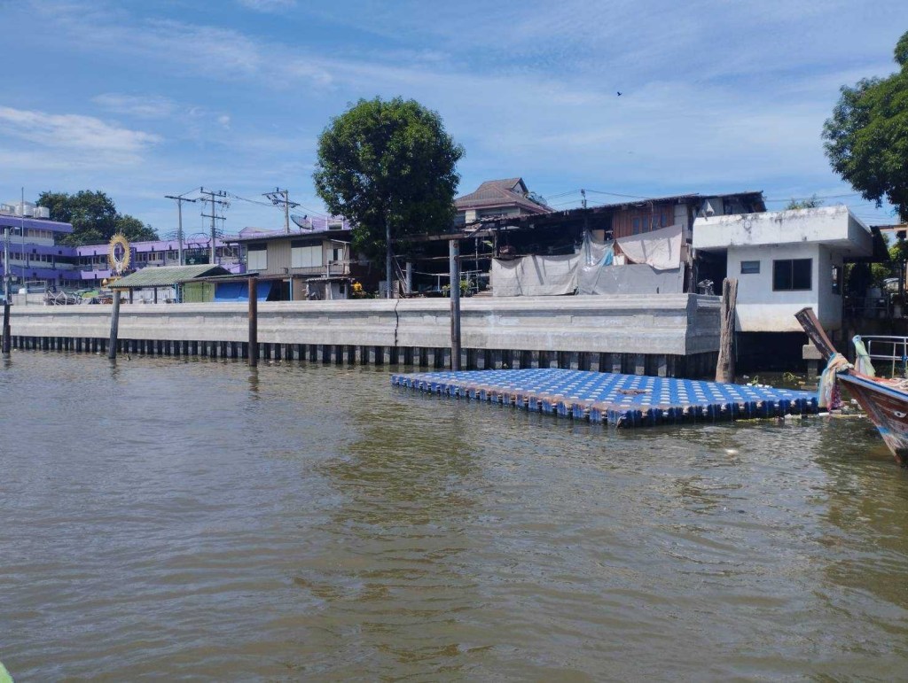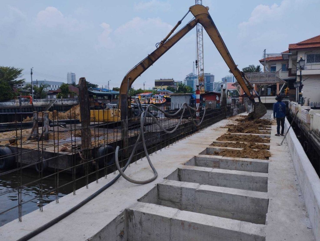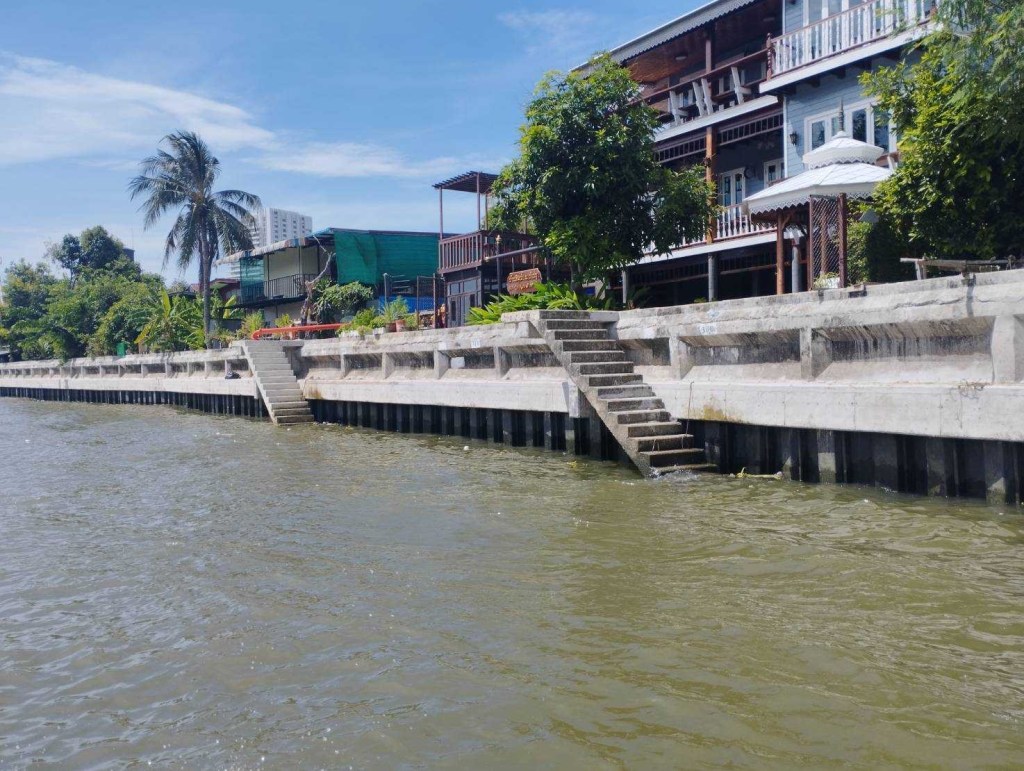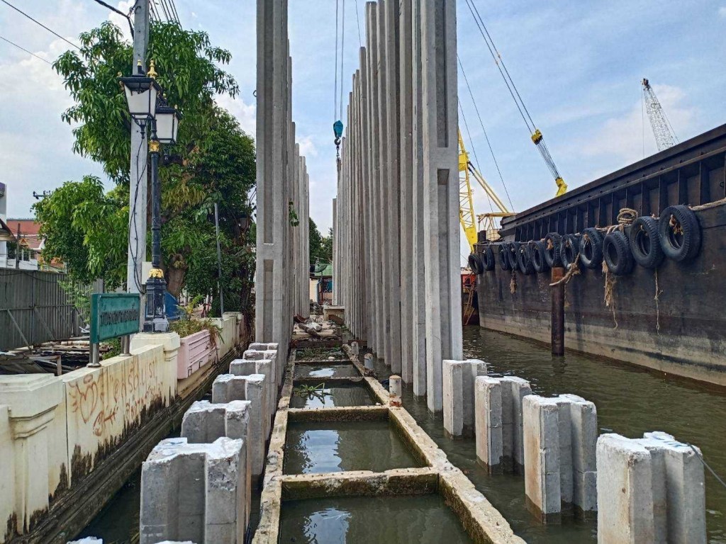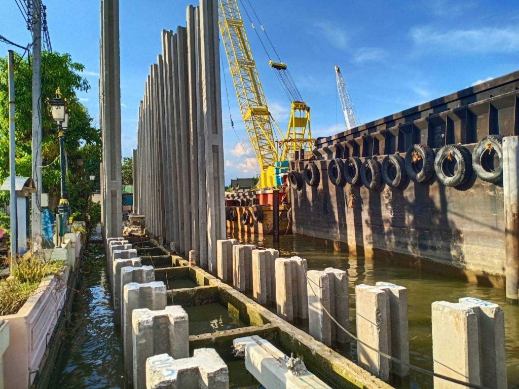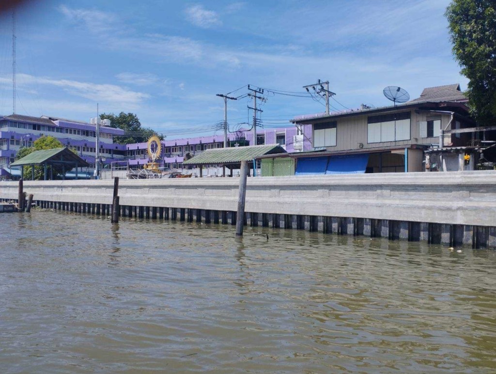 งานก่อสร้างและปรับปรุงแนวป้องกัน น้ำท่วมริมคลองบางกอกน้อย ช่วงวัดสุวรรณารามถึงสะพานอรุณอมรินทร์